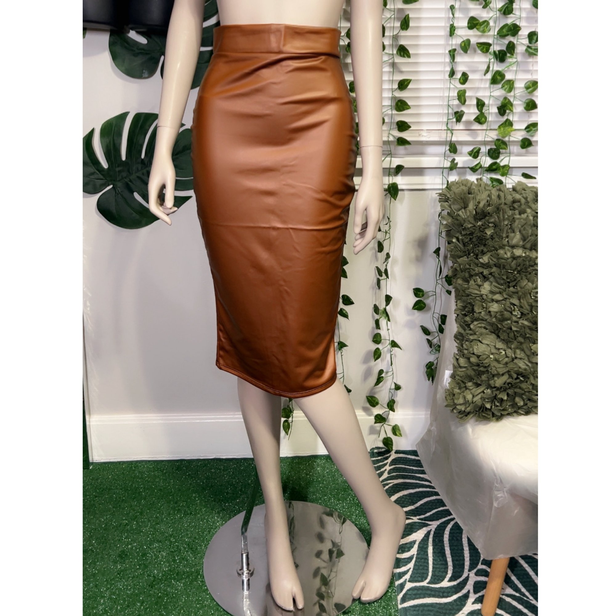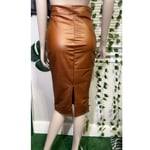 High Waist Pencil Midi Skirt with excellent stretch faux Leather with back split