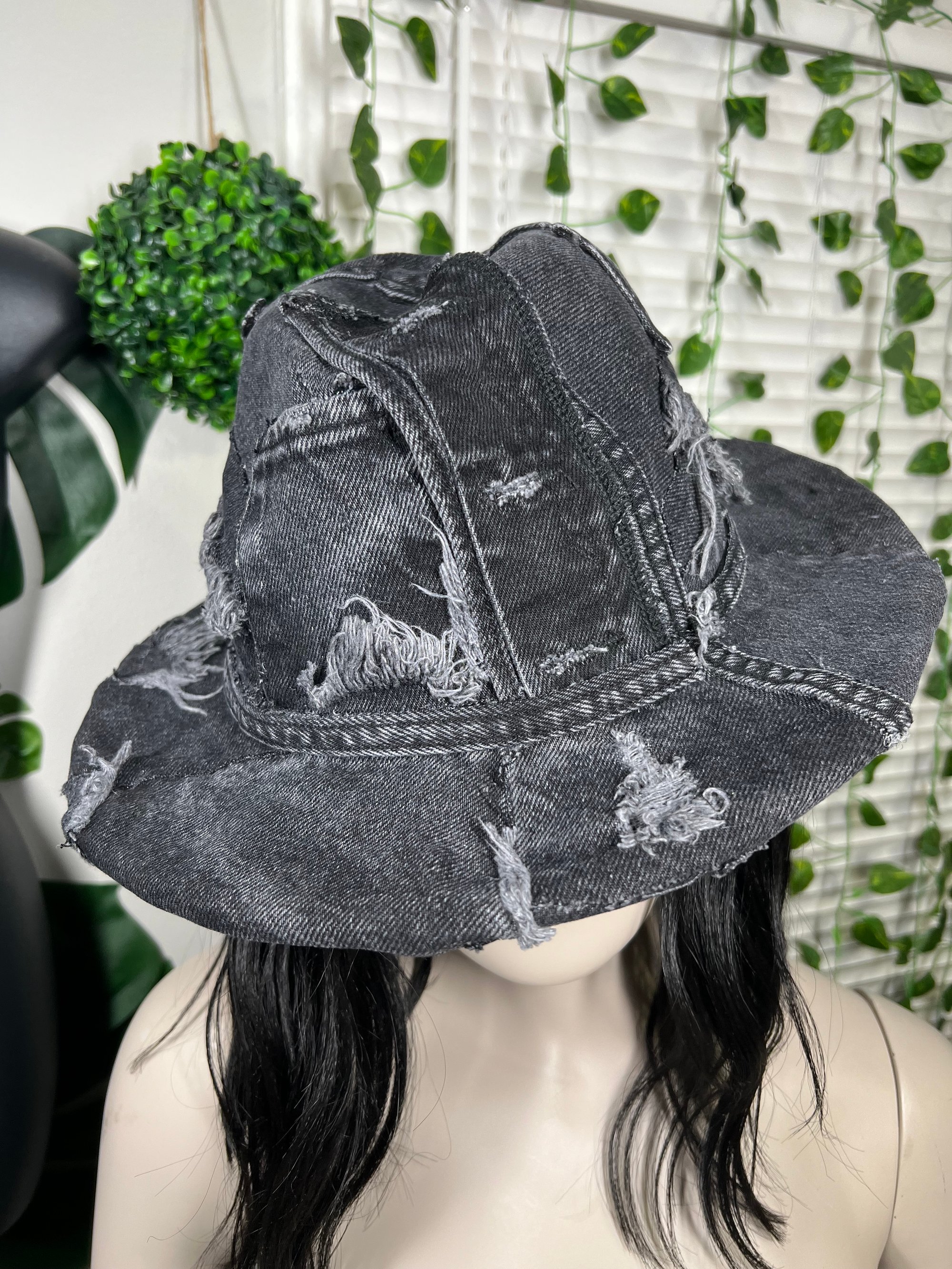 Dirty Diana Fedora in Blk Denim w/Royal Bottom